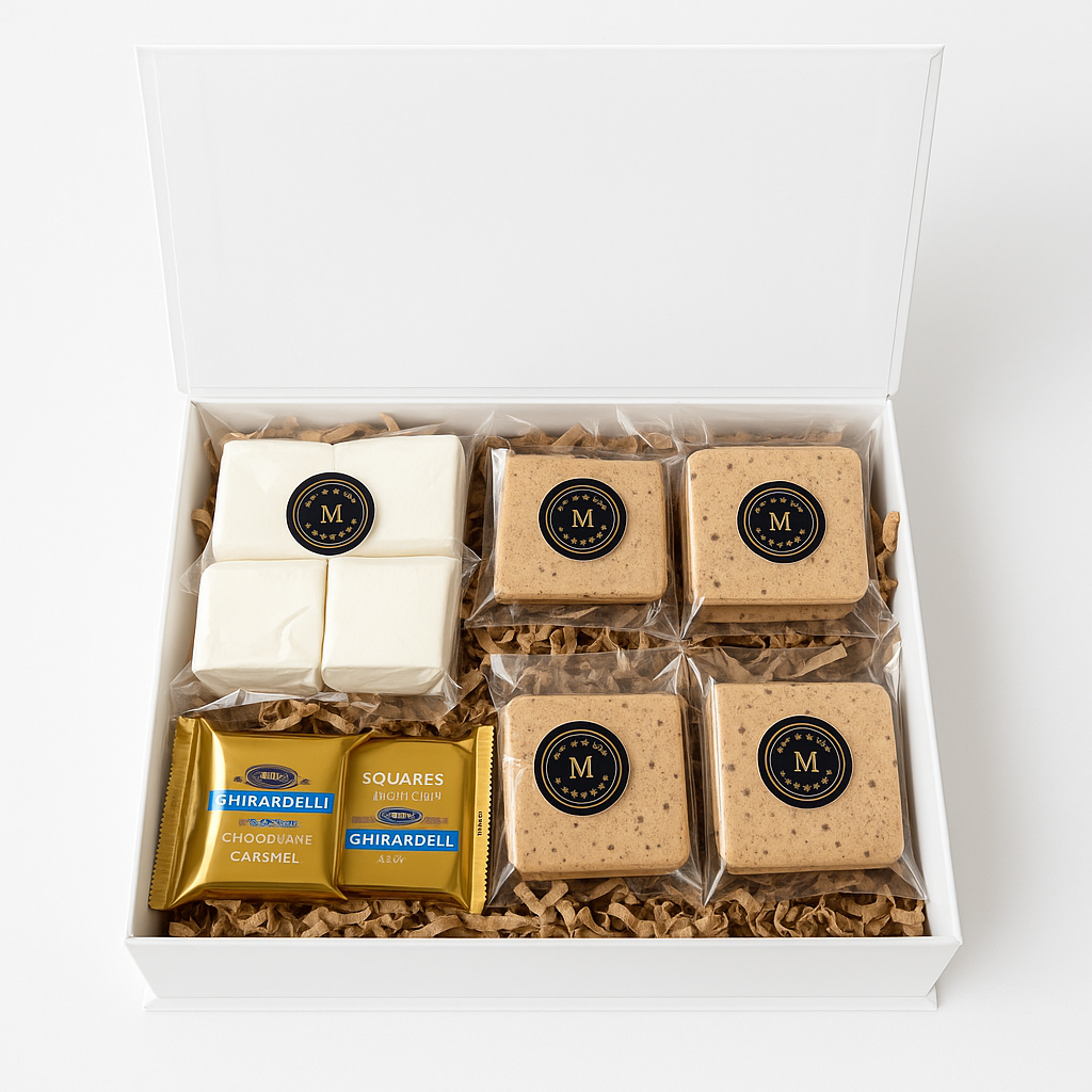 Featuring four hand-crafted marshmallows, each layered with bold flavour and botanical nuance, paired with premium chocolate and an elegant duo of cookies. Think of it as a fireside flight: nostalgic, grown-up, and impossibly indulgent. Shelf-stable for up to one month; no refrigeration required.