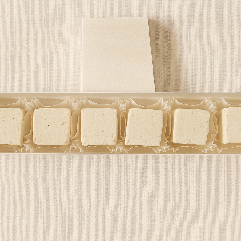A bold escape in a single bite, this golden marshmallow is infused with sweet mango and finished with a sparkle of Tajín for a playful twist of chilli, lime, and salt. Where tropical fruit meets desert heat.